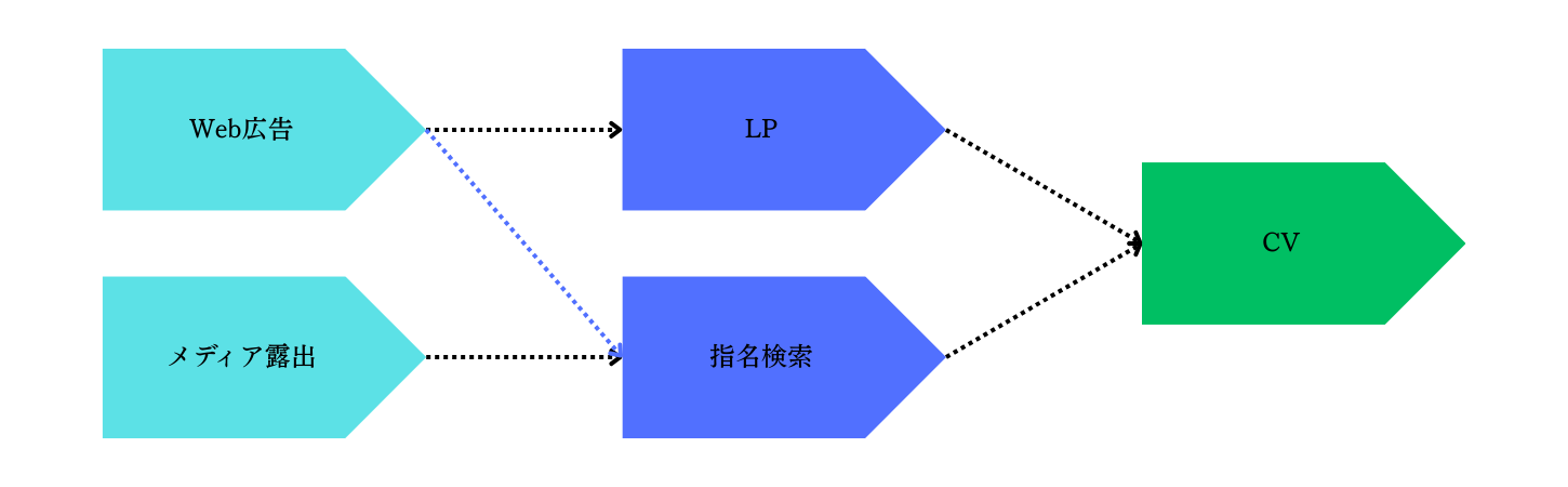 到達・滞在・誘導CVに加え、指名検索/間接CVなどの二次効果も追跡します。